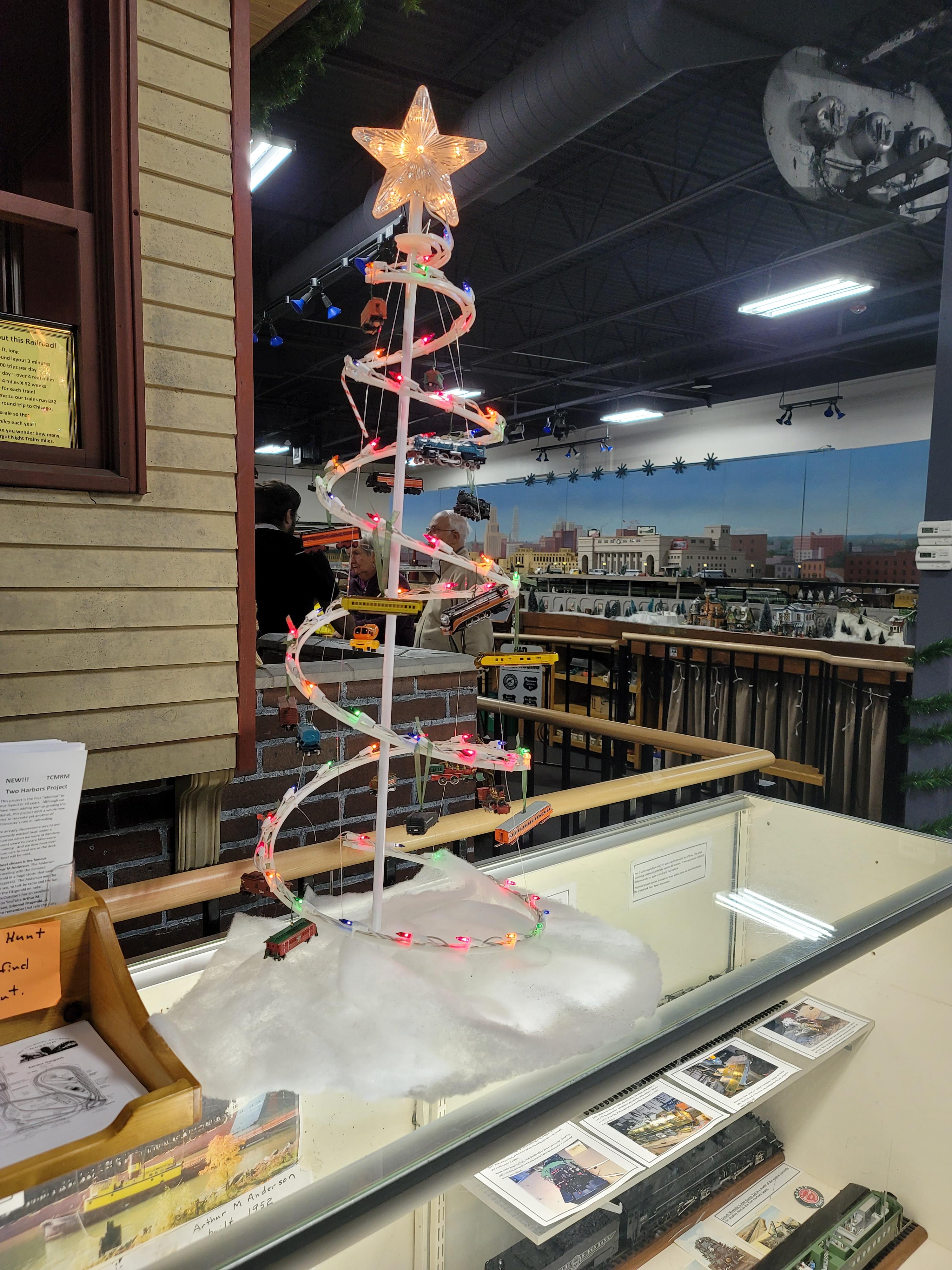 철도 모형으로 장식한 재미있는 트리. 그 외의 정경들도 감상.