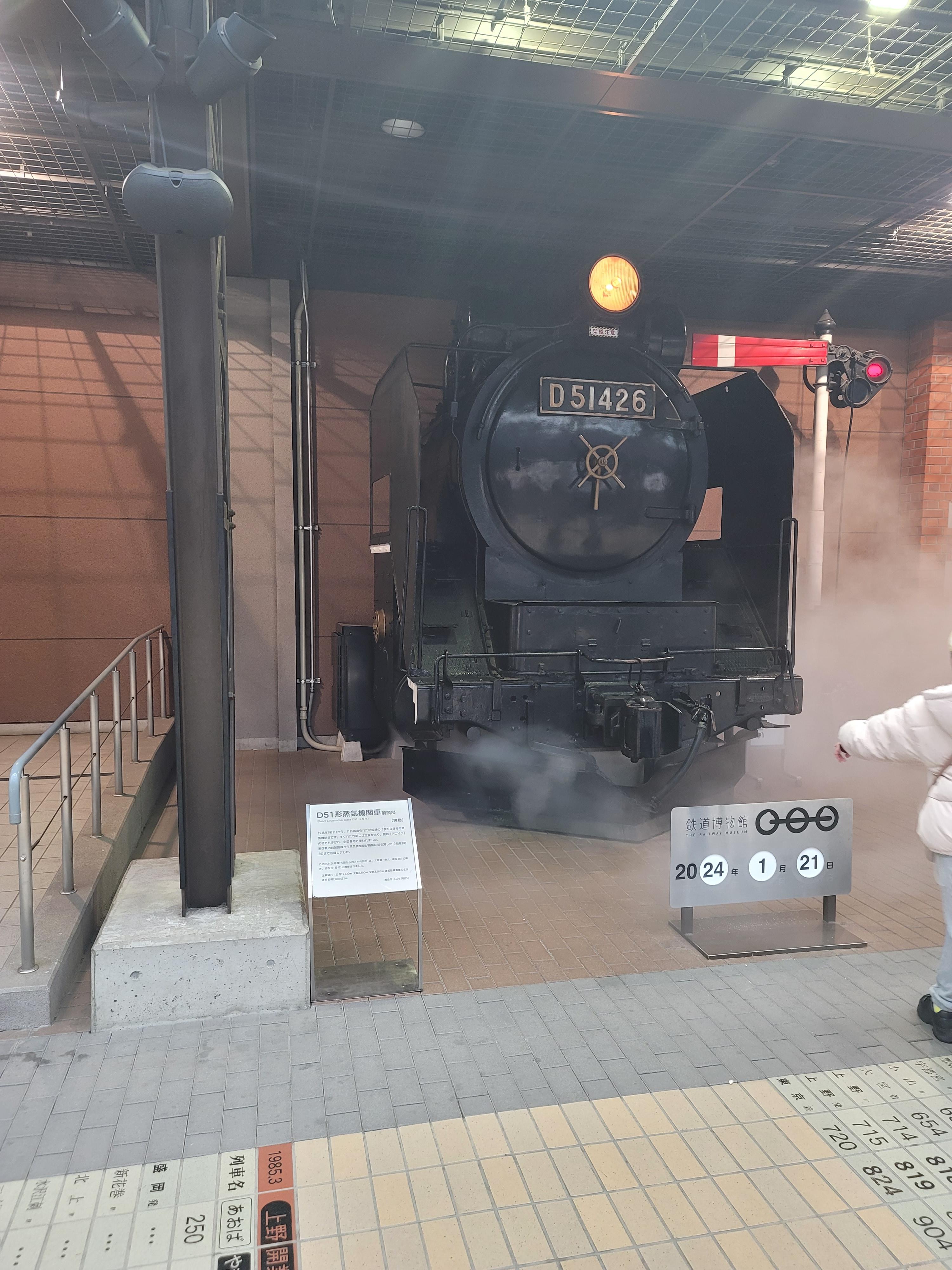 철박에 들어가기 전, 수 많은 차량의 명판과 부품들이 복도에 '새겨져' 있으며, 특히 사진의 D51 426 은 머리만 남아 가끔 저런 증기를 뿜어내고 있다. 일단 입구부터 의왕의 흙길 가득한 그곳과는 사뭇 다른 느낌이...