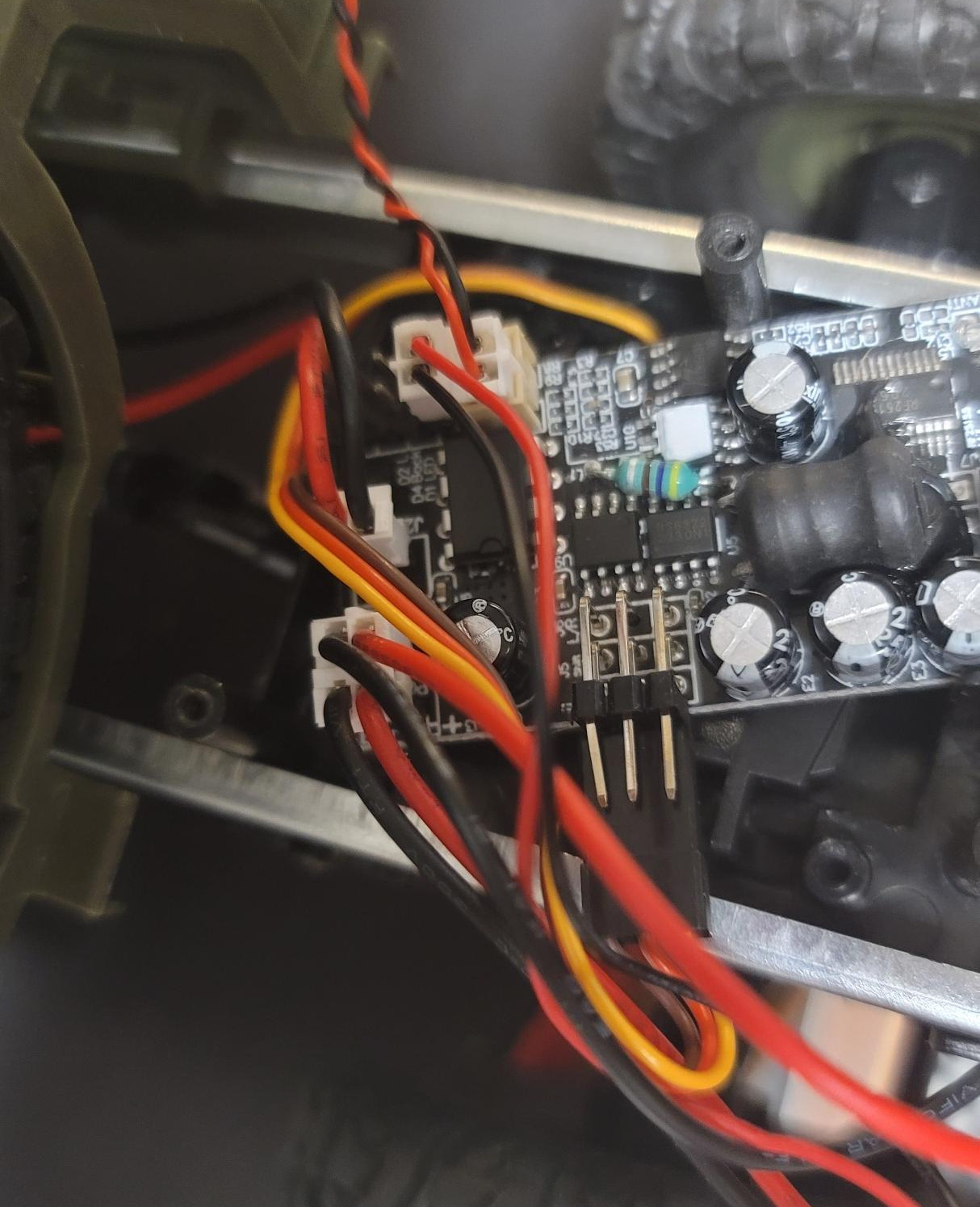 차량의 심장이라 할 수 있는 ESC (Electric Speed Control). RES Ver.3 라는 상품명을 갖고 있다. 전용 컨트롤러와 리튬이온 배터리, 스피커, 몇 가지의 배선 포함 39달러에 세트로 구입. 구동용 모터 하나, 변속/조향/윈치용 서보 단자 네 개를 갖고 있으며 전면등/방향지시등/뒷등 및 구동음을 표현 해 주는 스피터 단자 + 채널 확장용 단자 이렇게 구성된다. 특히 구동음은 휘발유/경유 차량 소리 두 가지를 선택 구매할 수 있으니 심어야 할 차량에 맞는 기판을 선택하면 될 듯.