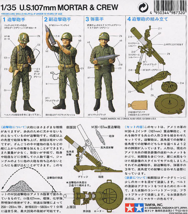 박격포 인형 세트가 아무래도 궁금해서 찾아보니 품번 35119로 존재하는 것이었네. 위에 보시는 박스 뒷면 이미지 또한 같은 구성으로 구판 아카데미 설명서 안에 들어가 있었다. 거 참.