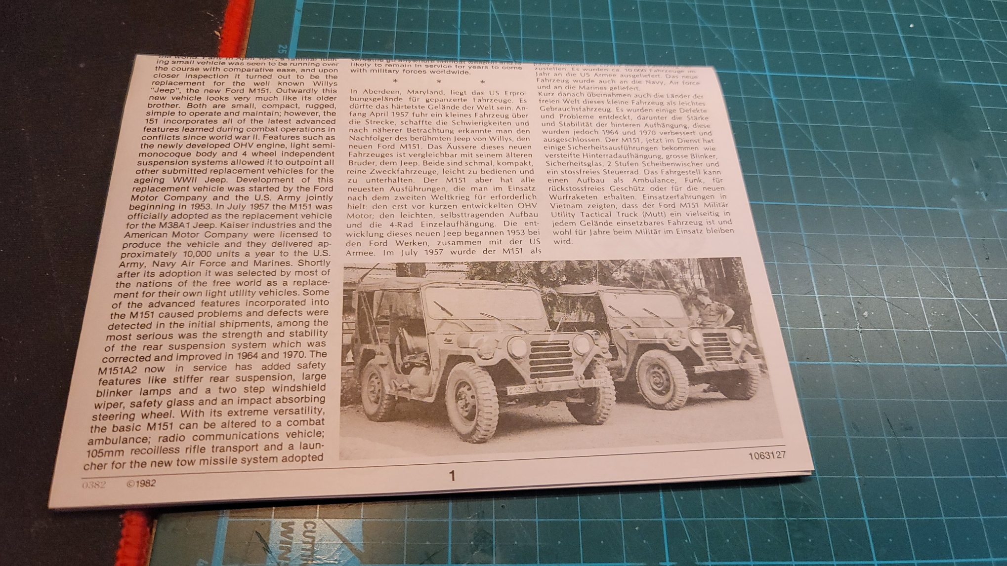 커버페이지 아래에는 과거 아카데미 프라모델에 있었던 실제 차량의 역사와 설명에 대해 영문, 독일어, 그리고 별도의 일본어 매뉴얼로 서술되어 있다. 아래에 붙어있는 사진마저 과거 80년대 그것 그대로. 이하 매뉴얼의 내용까지도 모두 똑같음.