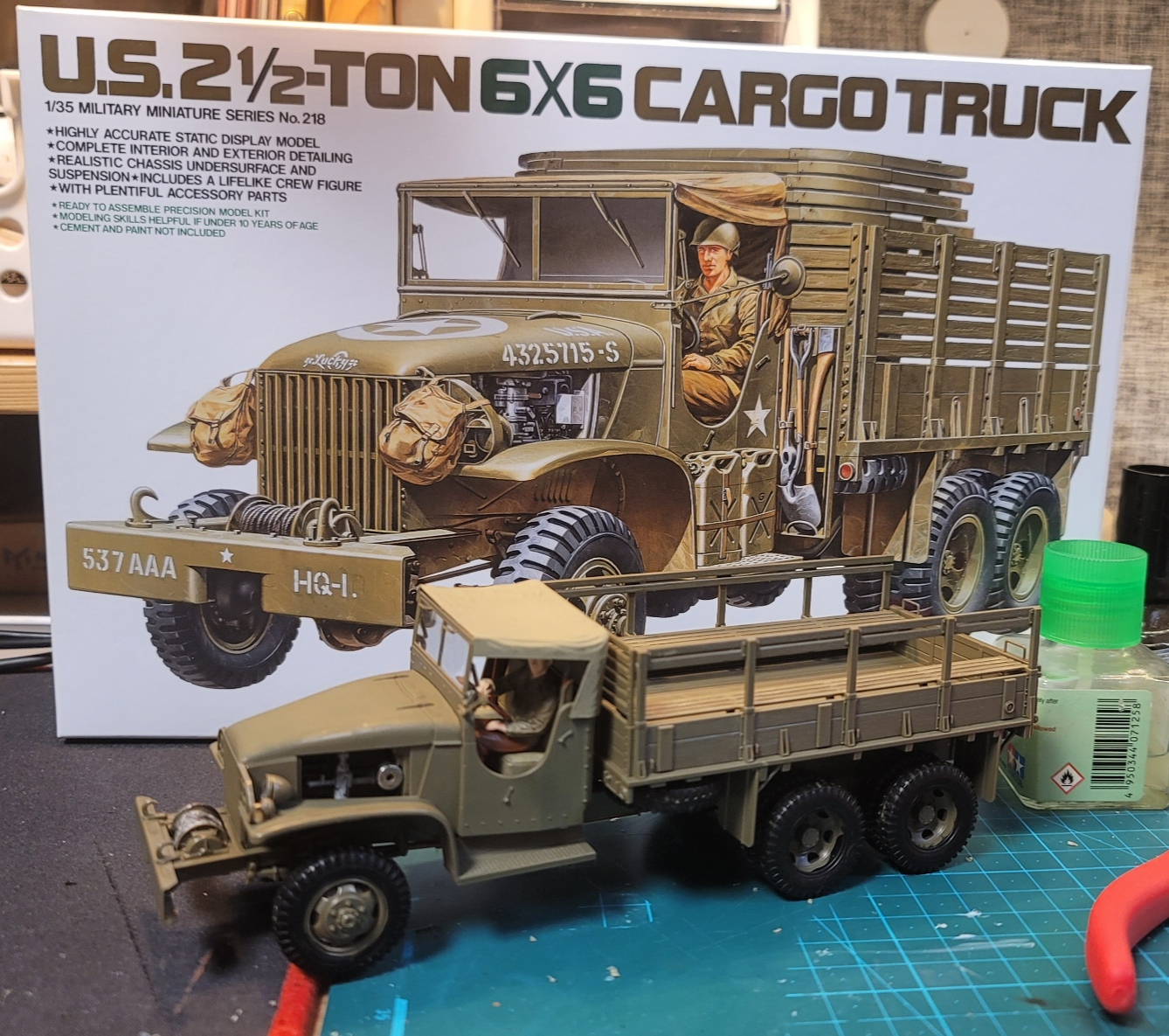 저 키트는 데칼 해주고 별물들 좀 쌓아주려고 함. 조립이 간단해서, 기회가 된다면 한 키트 더 사서 다음에는 민간불하 버전으로 파란색 도색해서 만들어보고도 싶다. 아무래도 WW II & 냉전초기 흔하디 흔하게 운용하던 군용 트럭인지라 타미야 외에도 다양한 회사에서 CCKW 를 내놓고 있던데, 한 번 보고 타미야를 다시 사든 (사실 타미야제가 저렴한 가격대에 포지션되어 있음. AFV나 중제 CCKW차량도 직구하지 않는 한은 싸지 않음), 다른 회사의 것을 사서 개조 해 보든 하고싶음.