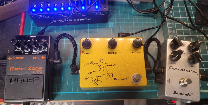 제목 그대로 일렉기타용 이펙터 세 개를 긴 시간 간격으로 하나씩 하나씩 사 보았음. 하나는 어릴 적에는 노브를 조정해도 도데체 뭐가 다른 소리인지 도저히 손을 댈 수 없었던 바로 그 문제의 이펙터, Boss MT-2 메탈존. 그리고 두 가지는 논란의 여지는 많지만 주머니가 가벼운 기타 취미가가 꾹꾹이를 알아본다면 한 번쯤은 써 봄직한 DemonFX라는 C國 회사의 Keeley 카피 컴프레서, 그리고 Klon 센타우르 오버드라이브 카피 이펙터.