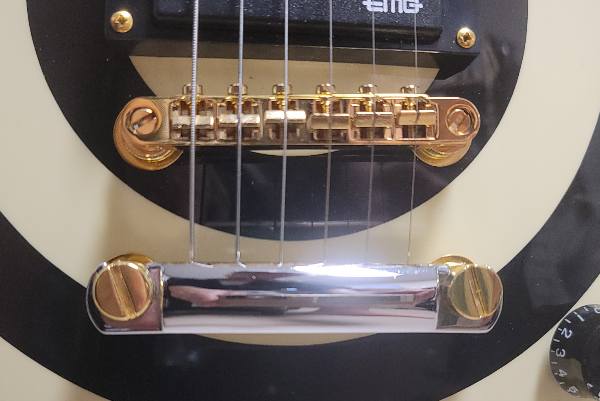 페그와 함께 브리지도 필수로 바꾸어야 할 것 중 하나인데, 원래 이 칩슨에 달려있던 튠오매틱 섀들 홈의 폭과 깊이가 1~6번줄 모두 같은 것을 보고 경악을 금치 못함. 이로 인해 1~3번줄이 브릿지 부분에서 줄에 유동이 발생, 위치에 따라 버징이 났다 안났다 하는 현상이 극심했다. 앰프로 버징음이 들릴 정도로 심각했는데, 교체 이후에 버징은 싹 사라진걸로 좋았쓰. 테일피스 색이 맞지 않지만 연주감은 더 좋아졌으므로 당분간 이대로 놓고 쓸 예정.