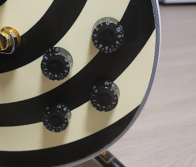 - 원래 잭와일드 불스아이에 없던 것인데 3way 픽업 전환 스위치에 '트레블-리듬' 패널을 사다가 끼워주었다. 아무래도 저게 없으면 레스폴 느낌이 안나서.