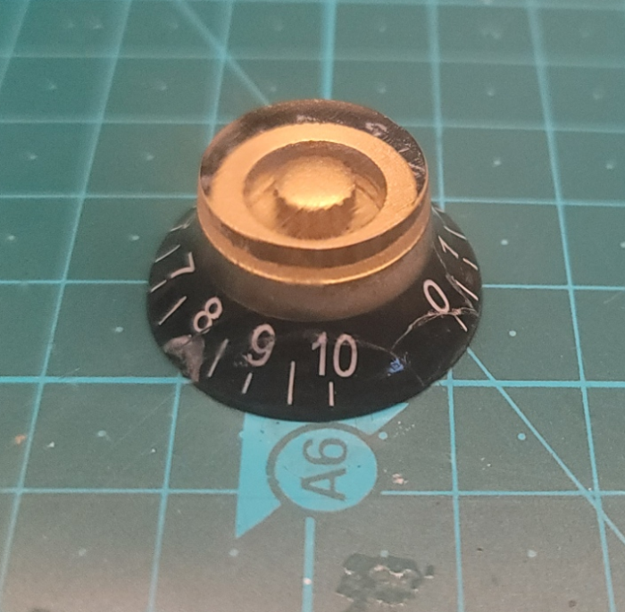 - 노브변경. 중간에 골드가 들어간 블랙의 종모양 노브를 달아줌. 리어 톤 노브가 그대로인데, 알리에서 배송오면서 한 개가 깨졌다;;; 깨진거 때워서 써 봐야 다시 깨질것 뻔하므로 그냥 저대로 쓰는걸로. 깁슨 스탠다드도 같은 형상의 노브를 사용하고 있는데, 커스텀의 원통형(스피드 노브라고 불리는 그것)보다 개인적으로는 훨씬 편하다. 분위기도 바뀌고 나쁘지 않음 - 결국 깨진 한 개 순접+베이킹소다 신공으로 파편화된 부품들 죄다 끼워 맞추는데 성공. 표면 좀 정리 해 주고 금간 곳 에나멜로 좀 때워주면 쓸 수 있으려나 싶다. 일단 굳히는데 며칠 걸릴 예정이므로 두고 봅시다.