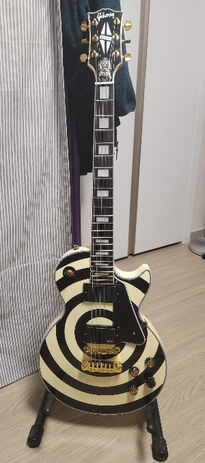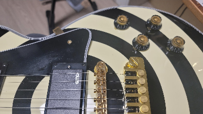 - 픽가드. 원래 쌉GeYi 같은 퍼플미러를 박으려고 했는데, 알리 셀러가 실수로 안보냈다 - 환불 처리. 그래서 함께 주문했던 칙칙한 검은색을 달아주었는데, 원래 커스텀 픽가드가 딱 저런 형태라 딱히 위화감이 들지는 않는다. 아치탑이 높지는 않지만, 픽가드 없는 레스폴을 오른손 피킹하려니 지지할 곳이 마땅치 않아 힘들었는데, 픽가드로 단을 좀 올려주니 아무래도 내 피킹 버릇에는 도움이 된다. 뭐 어짜피 칲슨인데 나사구멍좀 낸다고.
